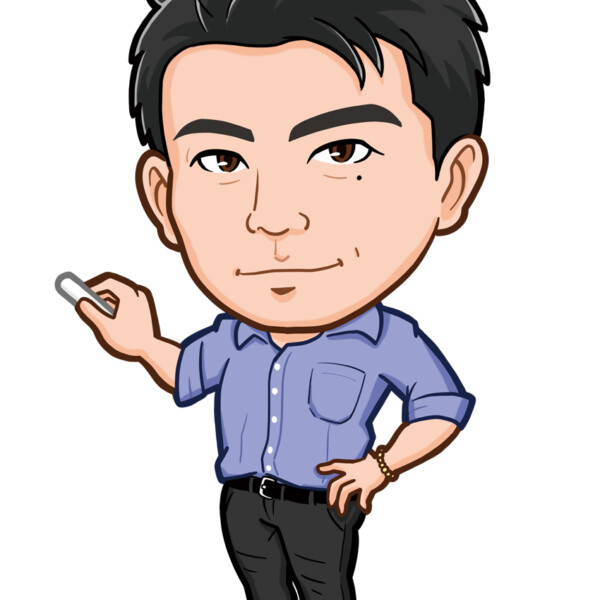袖をまくってチョークを手に持った男性の全身似顔絵を作成いたしました。 いただいた素材写真を参考にすこし斜め向きで黒板に向かって書...